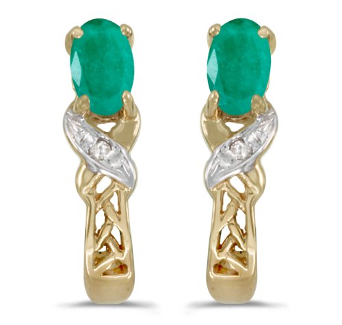 These 14k yellow gold oval emerald and diamond earrings feature 5x3 mm genuine natural emeralds with a 0.32 ct total weight and sparkling diamond accents.