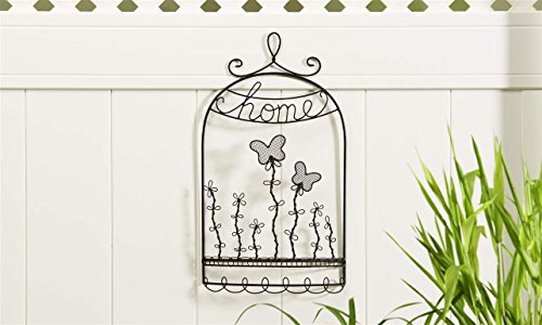 - This vintage inspired 'home' sign features a flat black painted iron birdcage design accented butterflies and flowers.