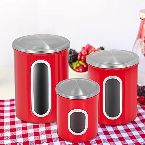 Fortune Candy Canister Set for Kitchen 3 Pieces Stainless Steel Food Storage Canisters with Airtight Lid Multi-purpose Kitchen Canister, Red