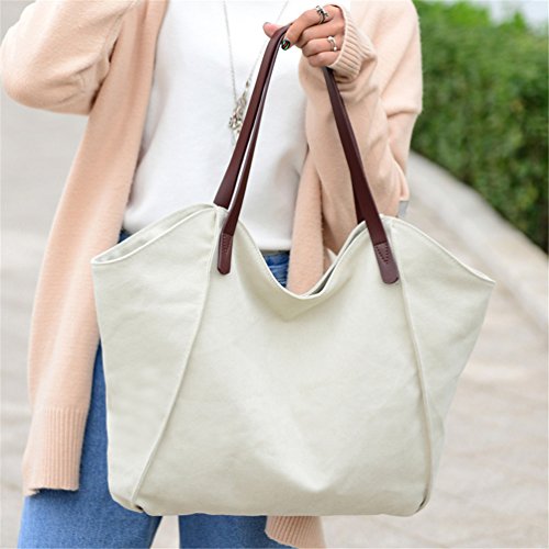 Sanxiner Women's Casual Canvas Tote Bags Shoulder Handbag Travel Bag (Beige)