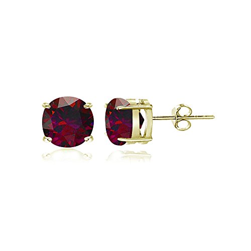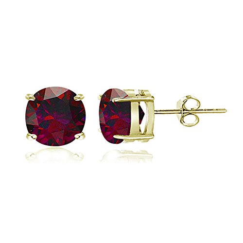 These stud earrings feature 4mm round prong set created ruby stones. The earrings are secured by post with friction backs and crafted of sterling silver.