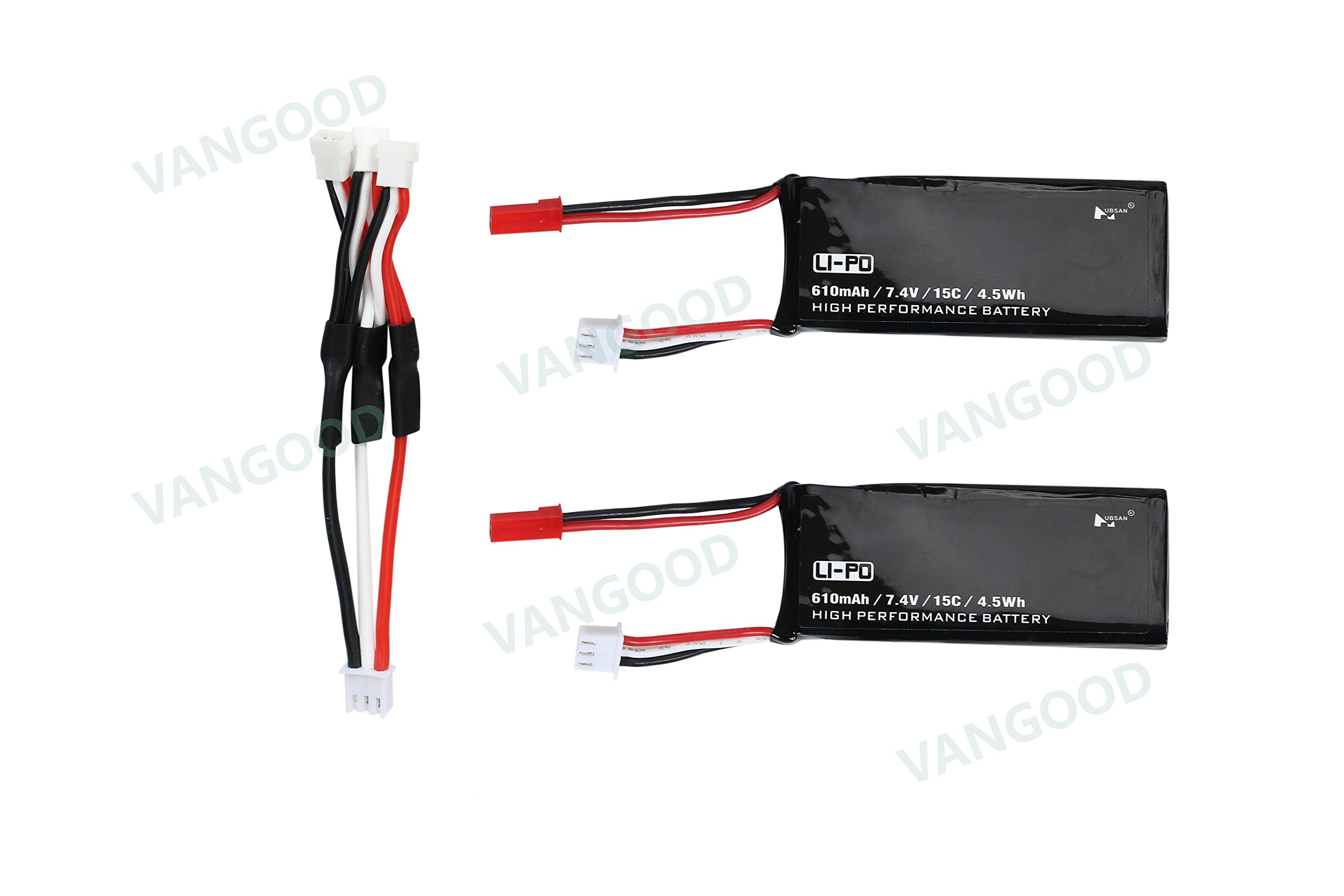 Battery type: lithium polymer 7.4 V 610 mAh Hubsan X 4 H 502 S, H 502 E 2 piece set + charging cable.