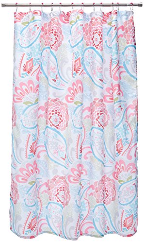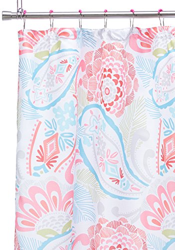 U.S Polo Association 130 GSM Waffle Knit Beverly Paisley Shower Curtain with Rollerball Hooks (Pink/Blue)