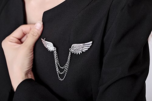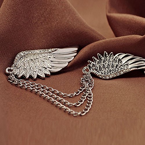 Let your style delicate with this Crystal Angel Wing Chain Brooch Pin, coming with double layered chains to complete the look, the collar pin brooch is crafted of polished silver plating and secures with a safety pin clasp.Feature