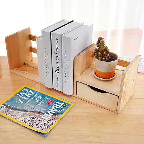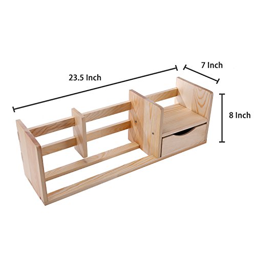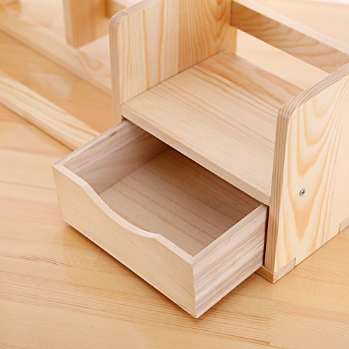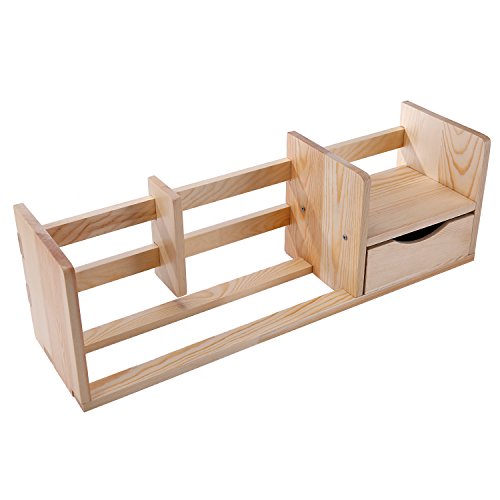 Unfinished Natural Wood Desktop Bookshelf Storage Shelf Rack with Drawer