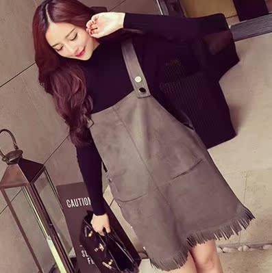 Brand/品名:青春灵动减龄麂皮绒流苏背带裙
