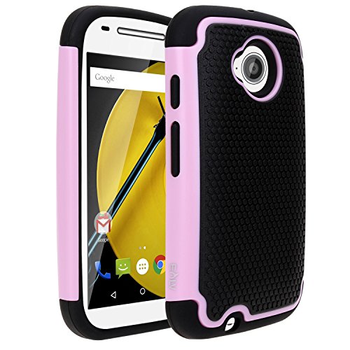 Moto E (2nd GEN.) Case, Motorola E (2nd GEN.) case, E LV Motorola Moto E / E2 ( SECOND GENERATION) (2015) Case, Full Body Hybrid Armor Protection Defender Case Cover - Dual Layer Armor Protective Case Cover for Motorola Moto E - BABY PINK