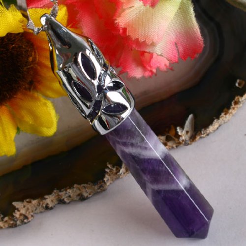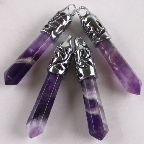 Top Plaza 1pc Genuine Amethyst Crystal Reiki Hexagonal Healing Pendant for Necklace Making,2.28''