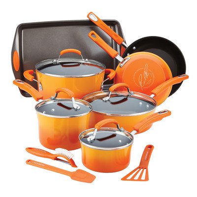 -. Title : Rachael Ray Hard Enamel Nonstick Cookware Set, 14-pc - Orange