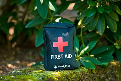 Compact First Aid Survival Kit (95 Piece) by Ready First | Travel, Outdoor, Hiking, Emergency, Camping, Hunting, Fishing | Water Resistant, Tactical Molle Straps on Back
