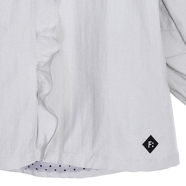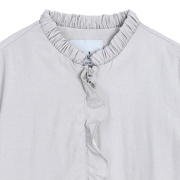 은은한 광택감이 나는 소재로 목과 소매 앞 중심 러플이 포인트인 긴기장의 러블리한 코트예요.