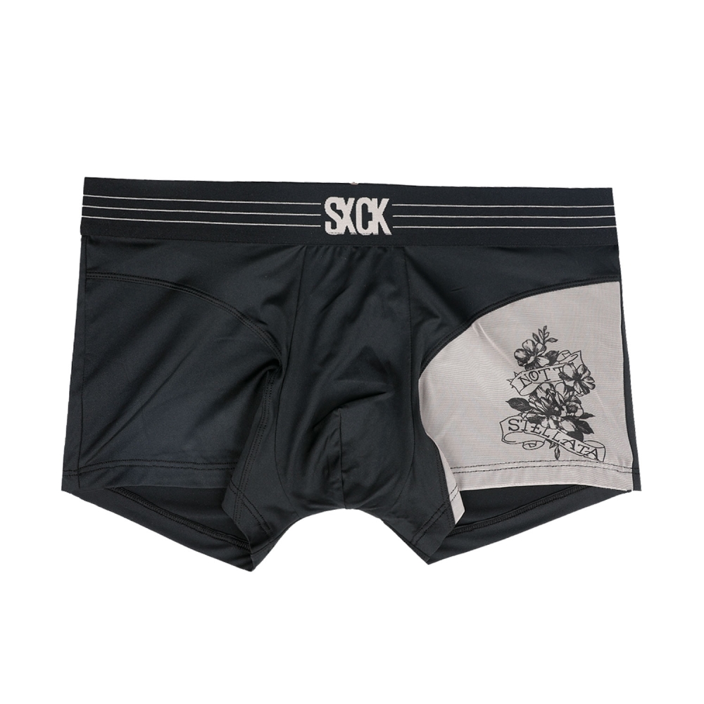 블랙 폴리스판을 겹으로 대어 시스루하면서도 남성적인 느낌을 살린 제품.