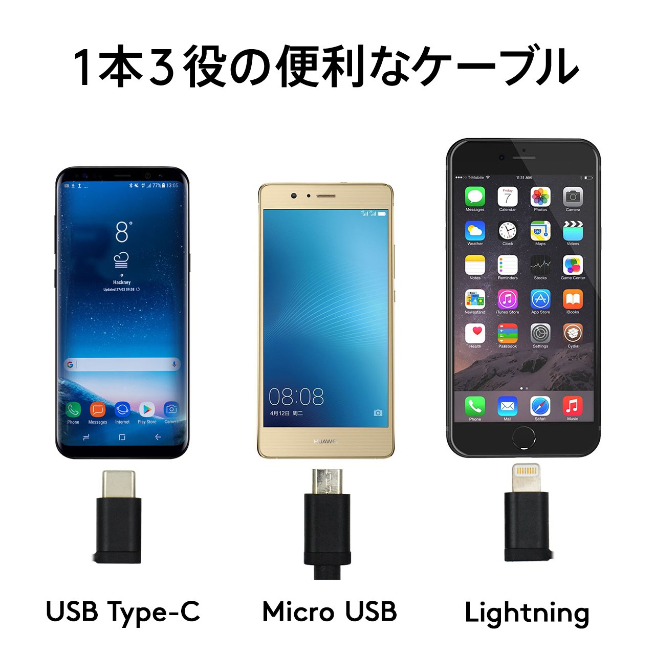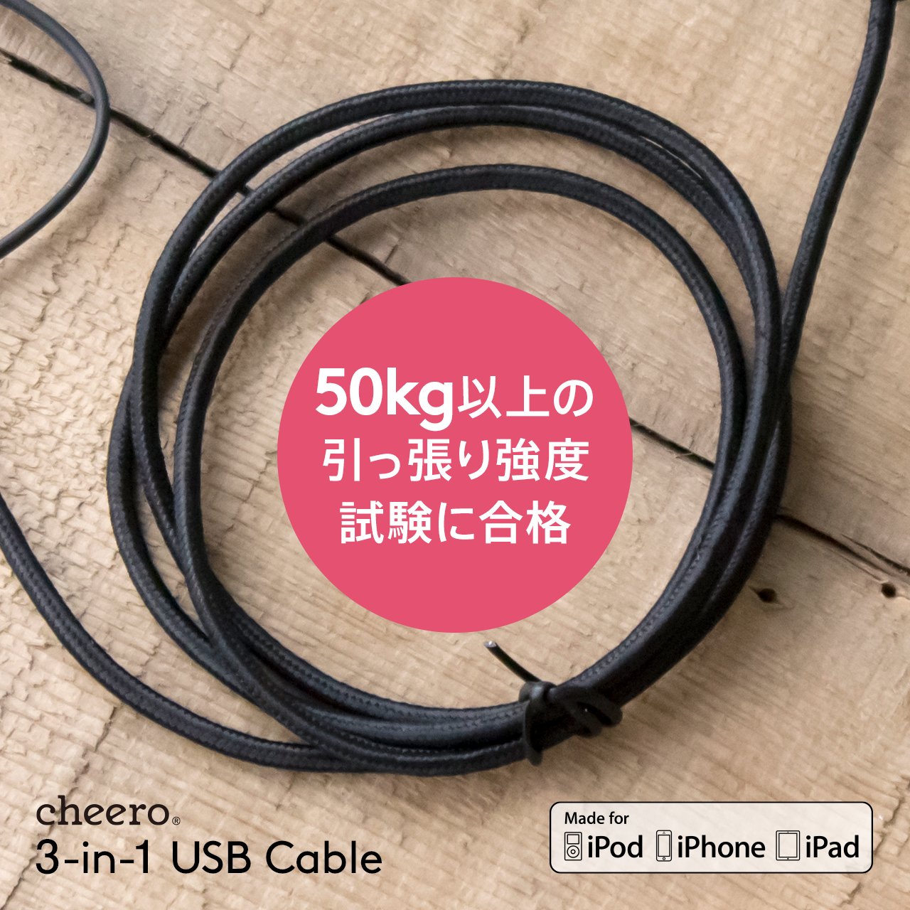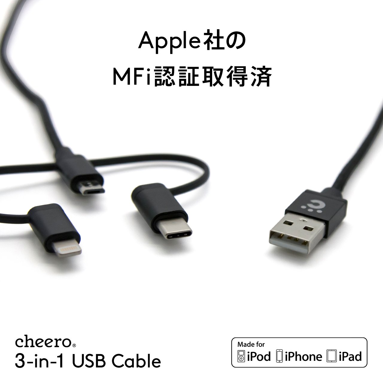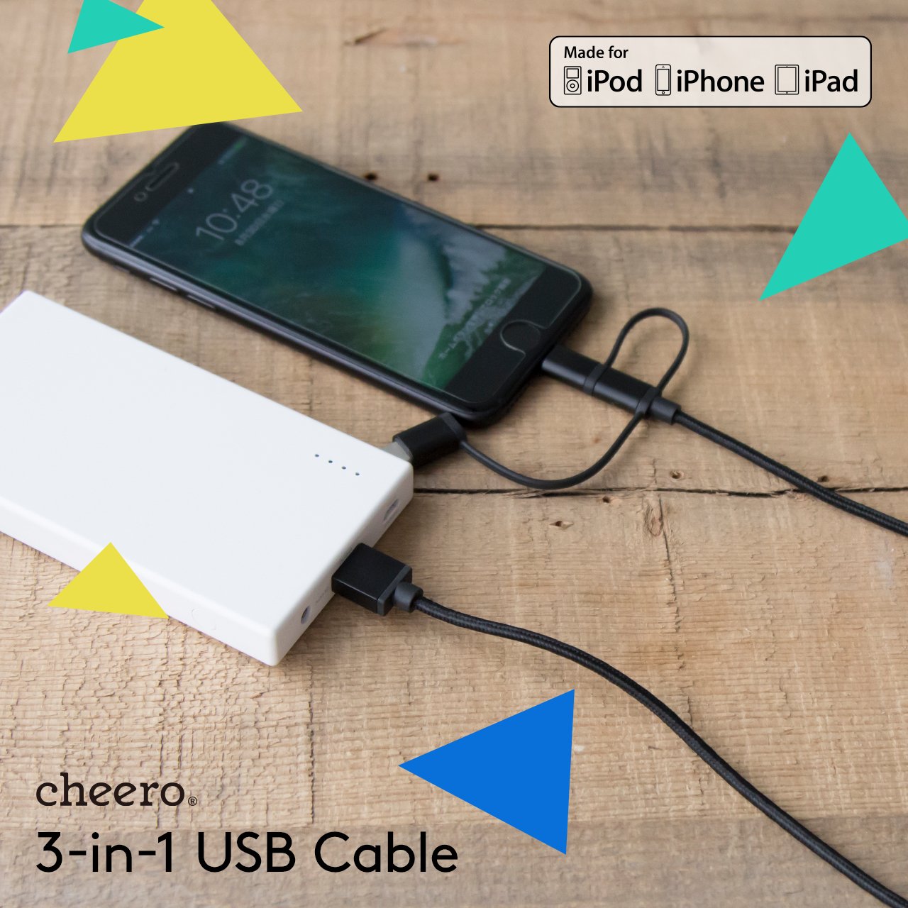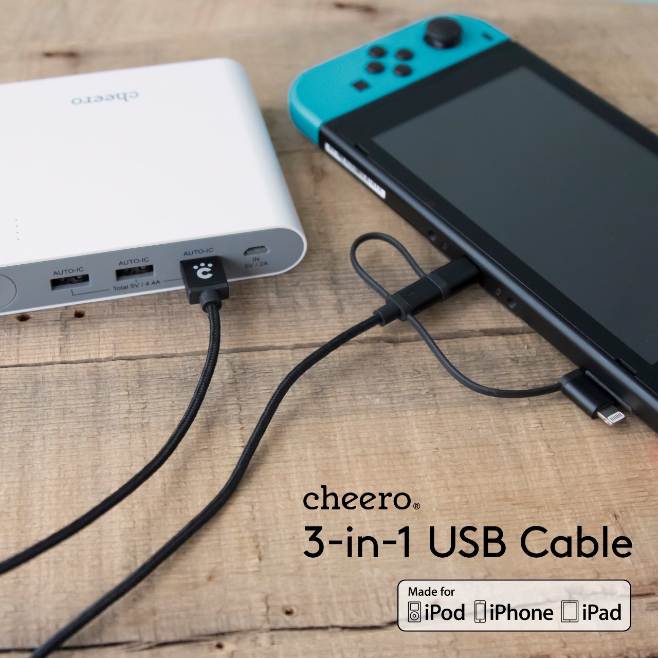 From cheero, a 3-in-1 cable corresponding to three types of ports appears.