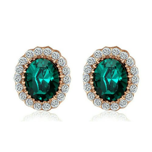 Oval pendant has been inlaid bottle green crystal,which has a very good cut craft.And the pendant edging has be paved top quality cubic zirconia. This design is a low-key luxury.