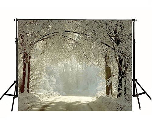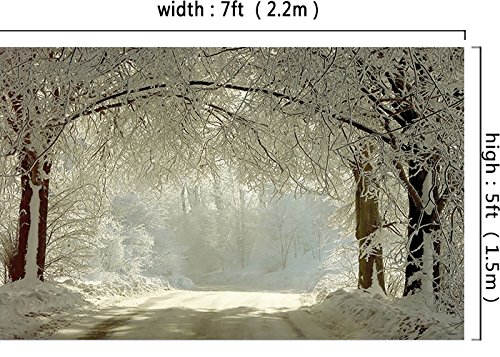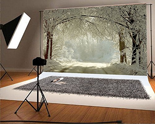7x5ft White Snow Covered Forest Road Photography Backdrop no Crease Winter Photo Background FT0279