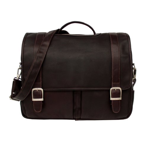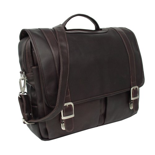 Studio : Piel Leather Publisher : Piel Leather Binding : Apparel Product Description Flap opening secured by dual clasps reveal two large pockets and long zippered pocket. Large main compartment with organizer and back zippered pocket. Fits up to 15.5 inch laptop, but compartment is not padded. Top handle for easy carrying and adjustable/detachable shoulder straps. 0