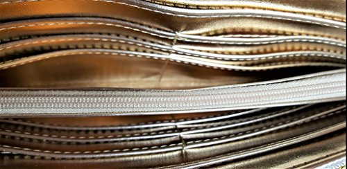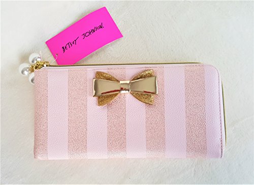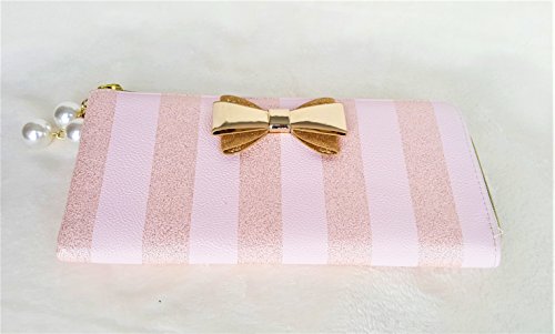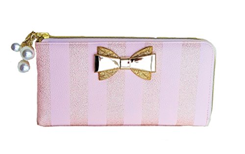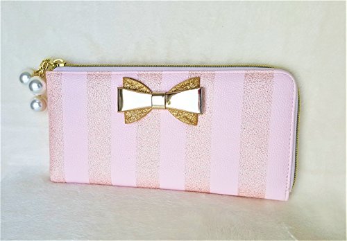 Binding : Apparel Product Description Over all Polyurethane exterior with Gold color Polyurethane bow. Zip Around Top Right side, Zipper has 3 pearl charms suspended from 3 small gold-tone chain pull. Wallet Measures 9.5"x4.5" Inside of the Wallet 3 sections which includes a Centre divider Zip Pocket between the 2 side sections. Has 12 Credit Card Slots (6 on each side), 2 long slip pockets on either side wall. Gold color PU leather interior and Floral Signature Polyester Lining inside the card slots pockets. 0