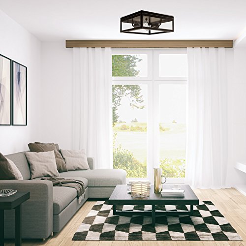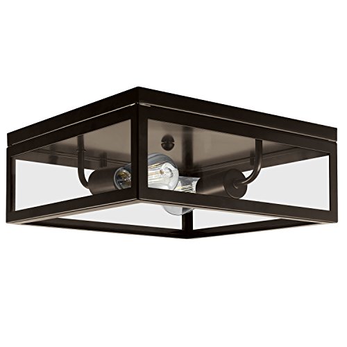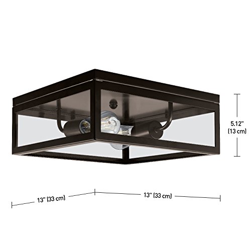 Globe Electric Memphis 2-Light Flush Mount Ceiling Light, Dark Bronze Finish, Clear Glass Panes, 65748