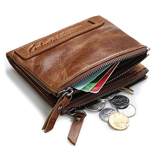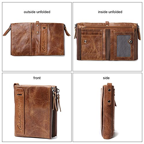 -. Title : Meiwo Crazy Horse Leather Wallet with Double Zipper Pockets for Man