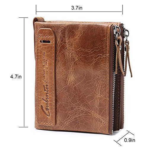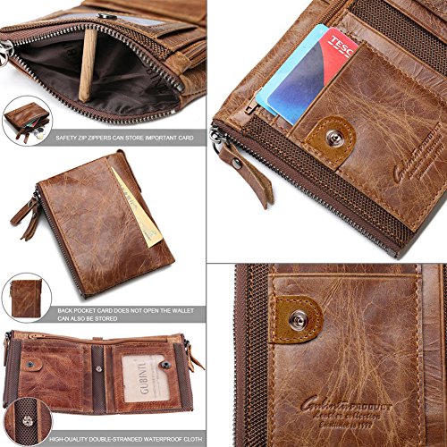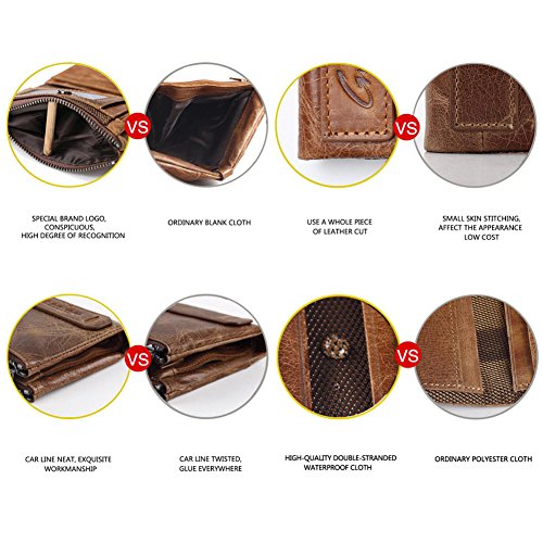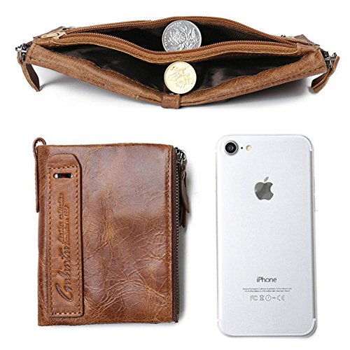 -. Feature : MATERIAL: Made of genuine leather , Wallet has a soft touch. / SIZE: 12 x 9.5 x 2.5CM / 4.7 x 3.7 x 0.9IN (HxLxW). / STRUCTURE: There is a large empty space, 2 card slots, a photo bit, 5 dark grid, 3 zipper hidden grid. / FEATURES: Metal zipper, exquisite workmanship, Double-stranded PU waterproof cloth, this is a high-quality leather wallet, you deserve to own one. / THE BEST GIFT CHOICE: perfect gift for husband, father, boyfriend, brother on Valentine's Day, birthday, wedding decorations, anniversary celebrations, employee benefits and other occasions.
