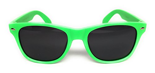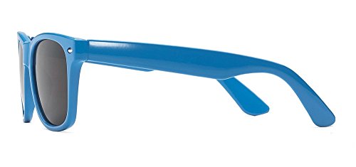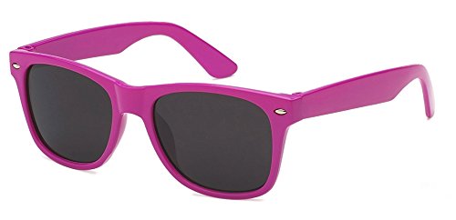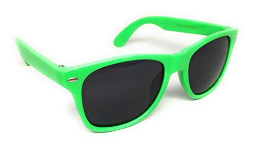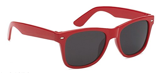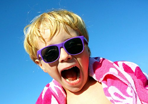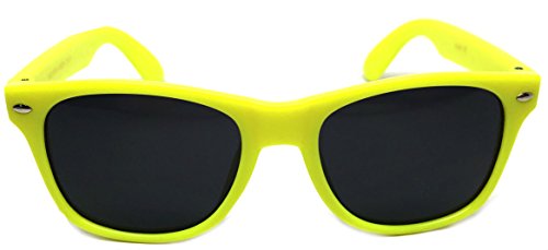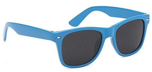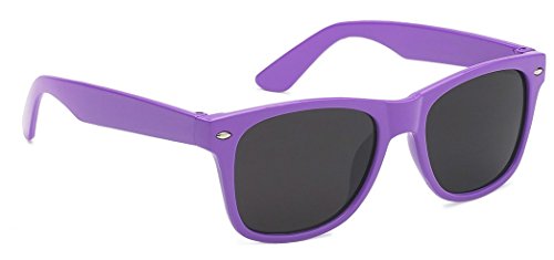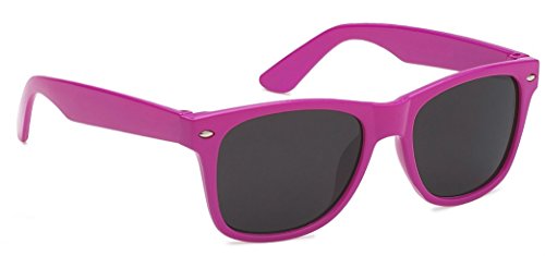 Product Description Fun Shades for Kids in a classic retro style shape! Lots of great colors to accessorize for the outdoors--or to just look cool! High Impact Plastic Frame which is sturdy and well built yet light weight and comfortable. This Classic shape looks great on boys or girls. Enjoy the Classic Solid Colors or the rubberized material frames with matte finish. Also, go bold with the two tone frames or color flash mirror frames. Although these are very basic glasses they offer excellent protection from the sun. They are rated at UV400 Protection--which is said to be 100% protection from UVA and UVB rays. Kids are pretty rough with glasses. These entry level glasses won't make you cry if they need to be replaced. Recommended to clean lenses with a soft cloth and never paper towel. Abrasive material may scratch the lenses. Have some fun with these glasses. Look sharp at the park, riding bikes or maybe everyone at a party could get a pair as a party favor--or to participate in a skit together. Everyone will look cool! Again, these are great quality for a very "entry level" price. 0