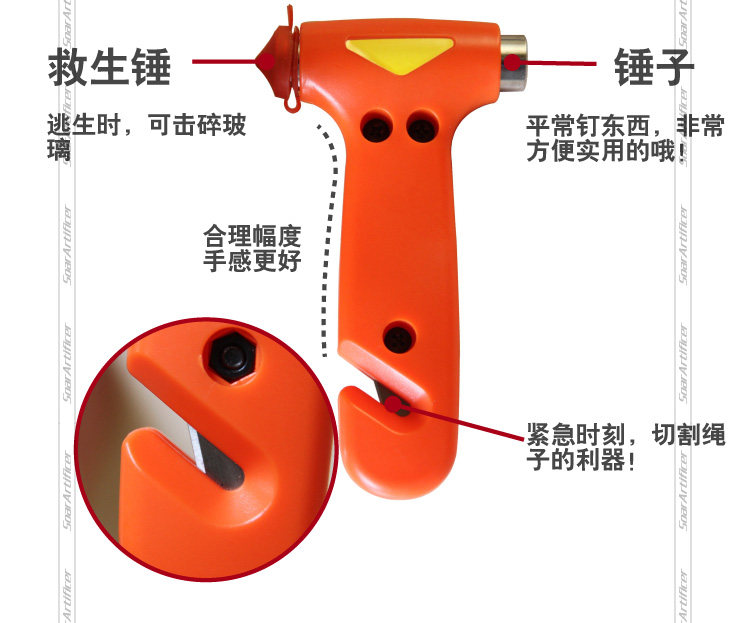 This is a car emergency safety hammer? you can use the next bus seat? good handle design when the unexpected when you can crack the maximum intensity of the glass? cut the car seat belt? not only improves the safety factor driving? but also car Friends of the essential safety supplies! private cars also applies!