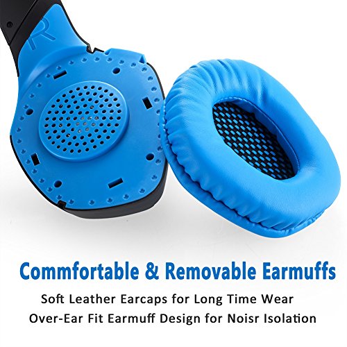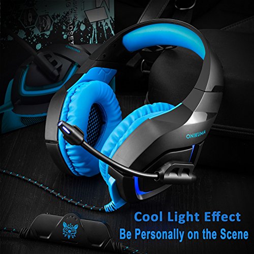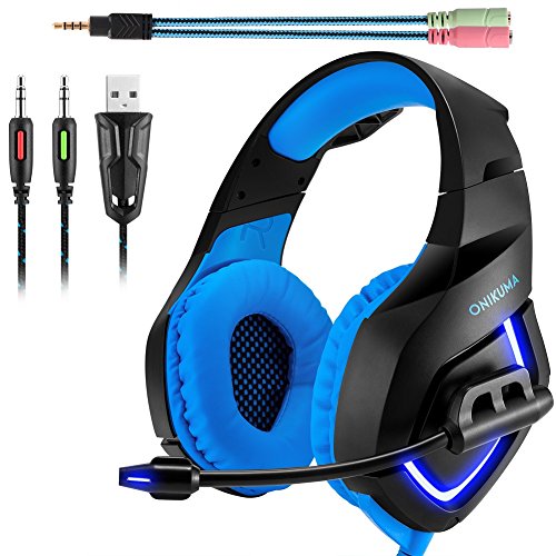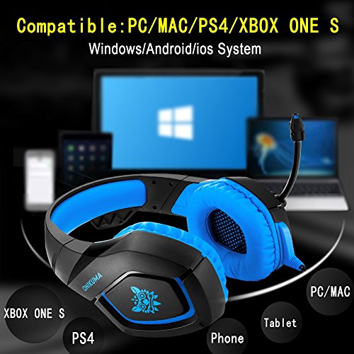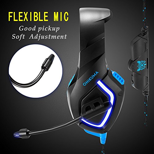 ONIKUMA K1 Gaming Headset, 3.5mm PC Stereo Gaming Headset for PS4 / Xbox One S, Bass Headphones with Soft Tube Microphone Volume Control, Noise isolation for PC Mac Laptops Computers (Blue)