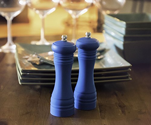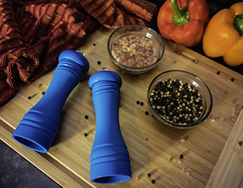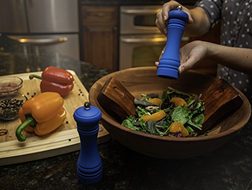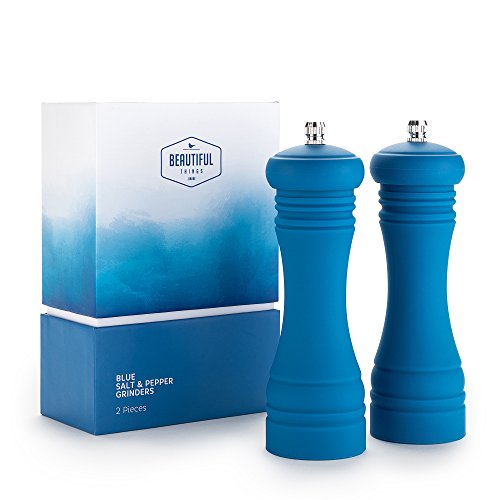 SET A STUNNING TABLE These elegant, blue rubber salt and pepper grinders look stunning and they feel wonderful in your hands with their smooth, rounded shape. You and your guests will smile whenever you use them :)