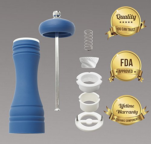 Salt & Pepper Grinders - Cool Blue Rubber - Set of 2 - 100% Performance Guarantee - Ceramic Mechanism - Stylish Table Decoration - Beautiful To Hold And Use - Salt & Pepper Shakers Mills