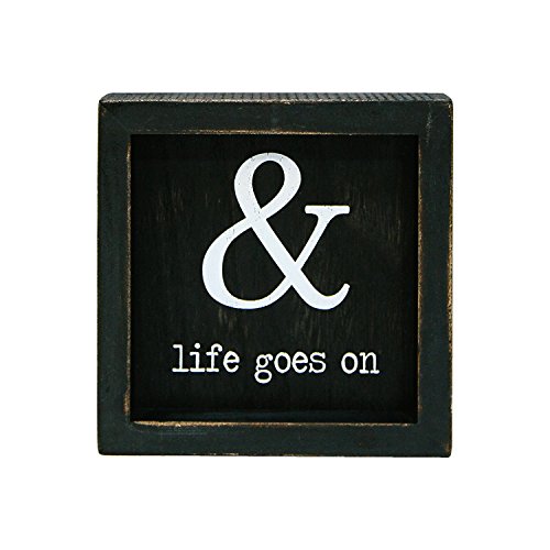 & Ampersand Life Goes On Black 6 x 6 Inch Wood Framed Hanging Wall Plaque