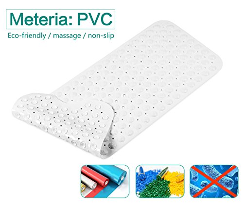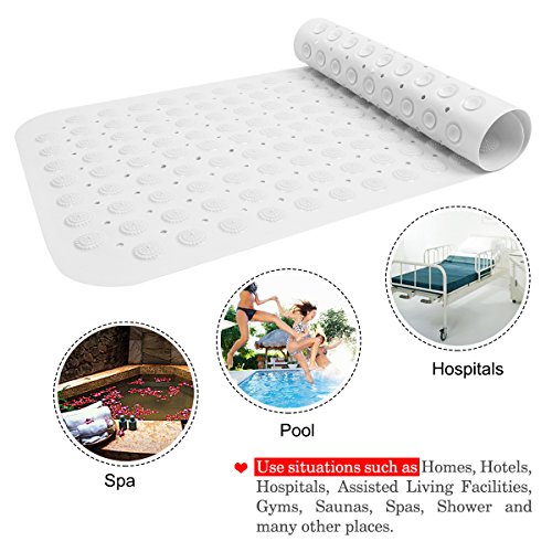 Bath Mat, Bluesim Non Slip Shower Bathtub Mat Non Skid Bath Mat Baby With Mold Resistant Non Sikd Anti slip Powerful Suction Cups & Superior Grip, Mat Extra Long Up To 16”39”, White