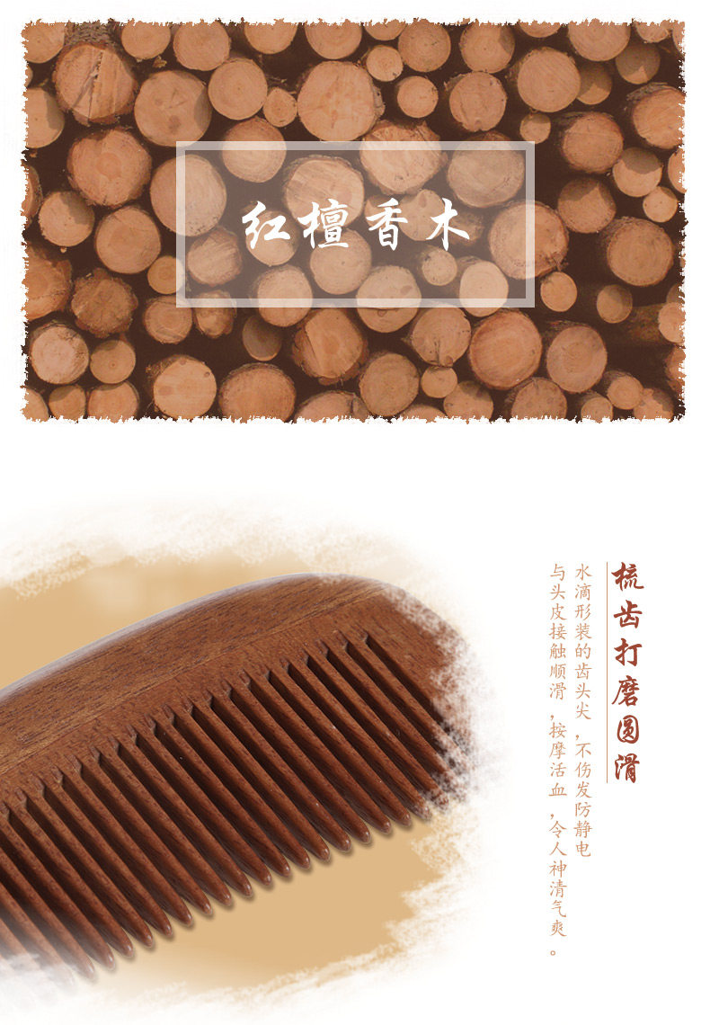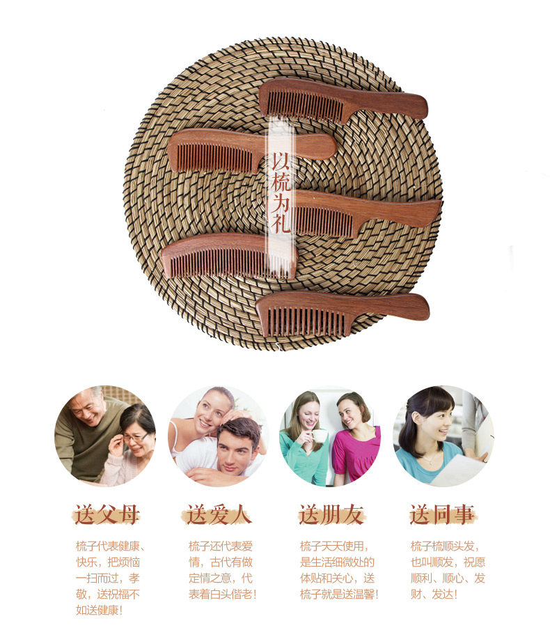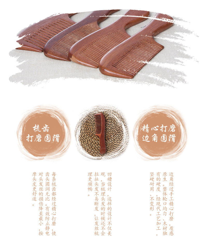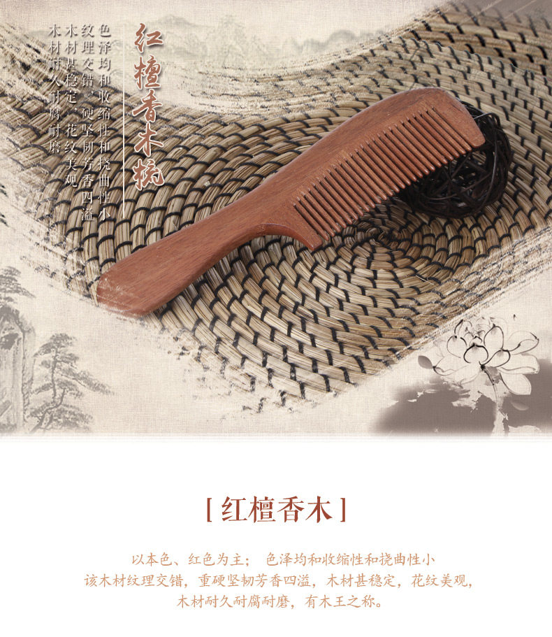 󰄬姣兰 红檀木梳 直发梳 檀香木 宽齿 防静电 梳子顺发
