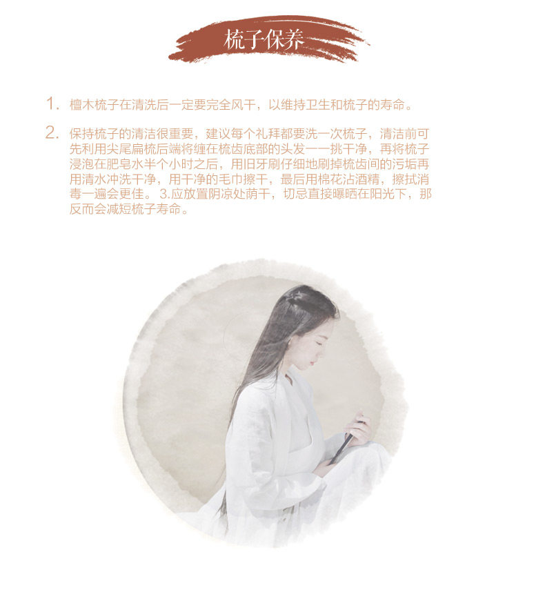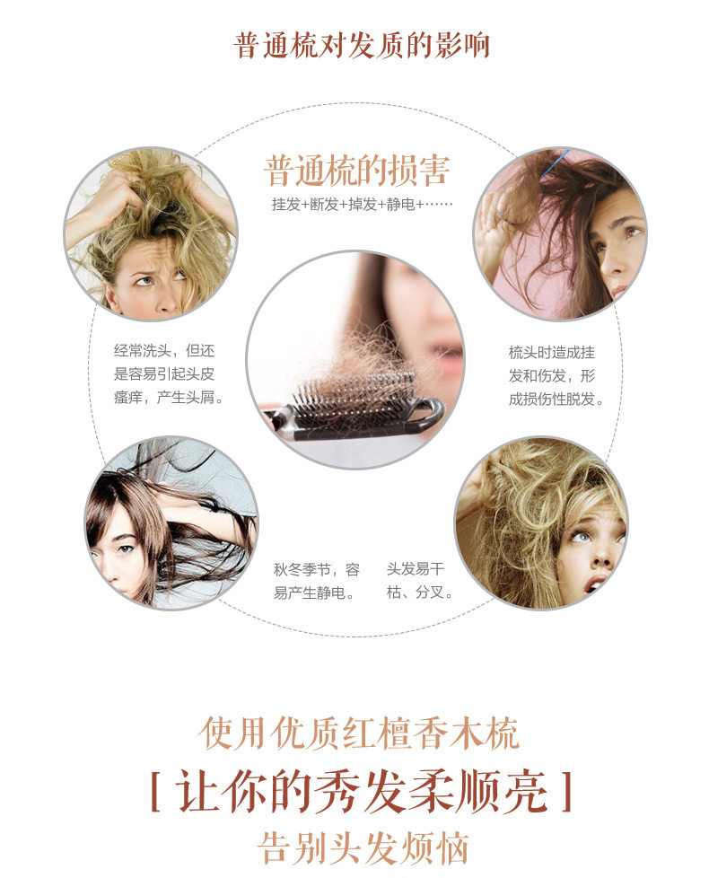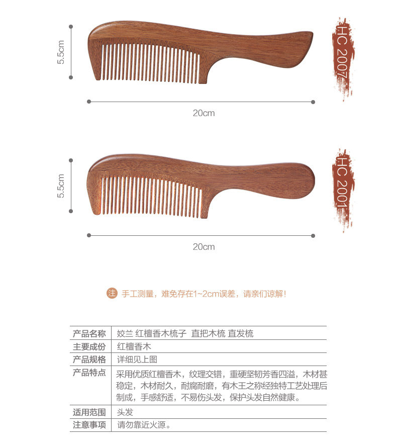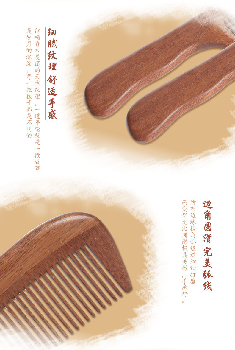 󰄬姣兰 红檀木梳 直发梳 檀香木 宽齿 防静电 梳子顺发