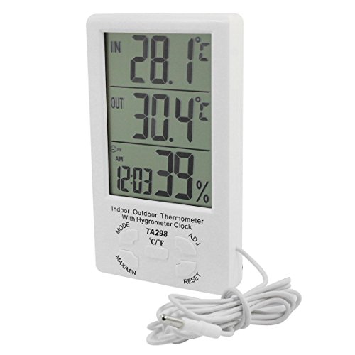 -. Feature : Product Name : Thermometer Hygrometer;Model : TA298;Temperature Range : -40°C~+70°C (-40°F~+158°F) / Indoor Temperature : 0°C~+50°C(32°F~122°F);Temperature Accuracy : 0.1°C (0.1°F);Humidity Range : 10%~99%RH / Humidity Accuracy : ±5%RH;Humidity Resolution : 1%;Power Supply : 1 x 1.5V AAA Battery (Not Included) / Size(Approx) : 15x 8.5x 2.5cm / 6" x 3.3" x 1" (L*W*T);Cable Length : 1.5M/5Ft;Color : White / Net Weight : 153g;Package Content : 1 x Temp Humidity Meter