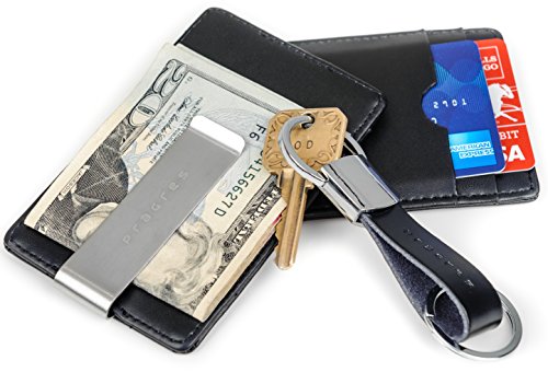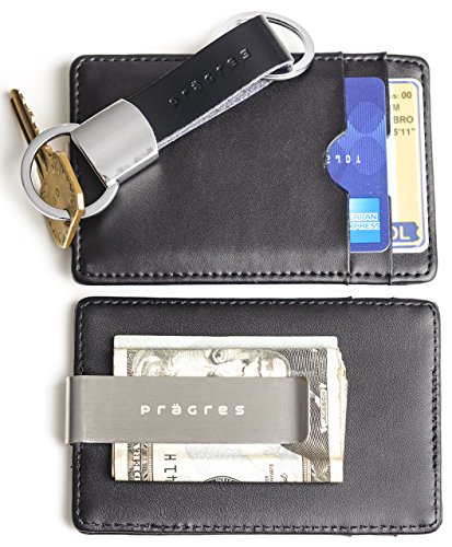 -. Binding : Apparel -. Brand : prägres -. Color : Black -. Department : mens -. EAN : 0642709352389 -. Feature : ✓ SLEEK LIGHTWEIGHT DESIGN: Eliminate unnecessary bulk and discomfort with this ultra-thin money clip wallet and carry all of your essentials in one place. / ✓ INTEGRATED MONEY CLIP: Save time and space by keeping your bills safely clipped with the removable stainless-steel money clip. / ✓ MINIMALIST - 4.4" x 2.9" x 0.4" -Designed to be as minimal as possible for the bare necessities. / ✓ BONUS LUXURY KEYCHAIN: Hang your keys in style with the matching spring-loaded leather strap keychain, which comes with a heavy-duty split ring for easy attachment. / ✓ SATISFACTION GUARANTEE: If you don't absolutely love your wallet, return it within 30 days for a full refund. -. PackageQuantity : 1 -. ProductGroup : Apparel -. ProductTypeName : ACCESSORY -. Size : One Size -. Title : Genuine Leather Front Pocket Money Clip Wallet Gift Set With Keychain -. UPC : 642709352389