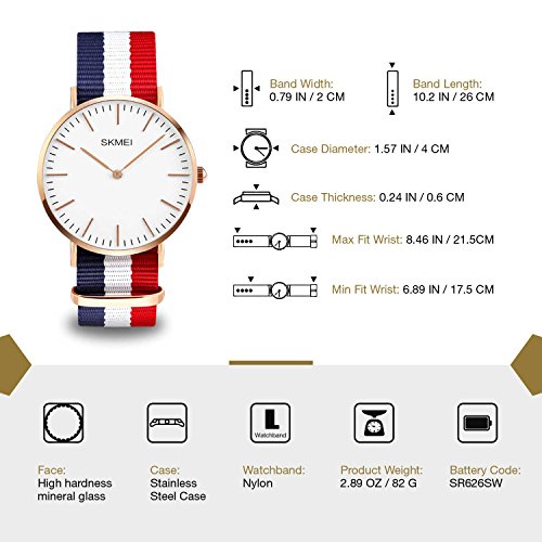 Brand, Seller, or Collection Name:cofuo Model number:1181 Part Number:1181 Item Shape:Round Dial window material type:mineral crystal Display Type:Analog Clasp:Buckle Case material:Stainless steel Case diameter:1.57 inches Case Thickness:0.24 inches Band Material:Nylon Band length:Unisex Band width:0.79 inches Band Color:Blue,Red,White Dial color:White Bezel material:Stainless steel Special features:Timer Movement:Quartz Water resistant depth:30 Meters