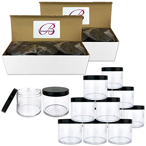 Beauticom 10 oz. (300g /300ML) (Quantity: 6 Packs) Thick Wall Round Leak Proof Clear Acrylic Jars with Black Lids for Beauty, Cream, Cosmetics, Salves, Scrubs