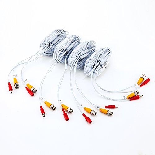 New Hosecurity Pre-Made All-in-One Siamese coaxial BNC Video and Power CCTV Security Camera Cable for HD AHD DVR camera connection (60ft, white)