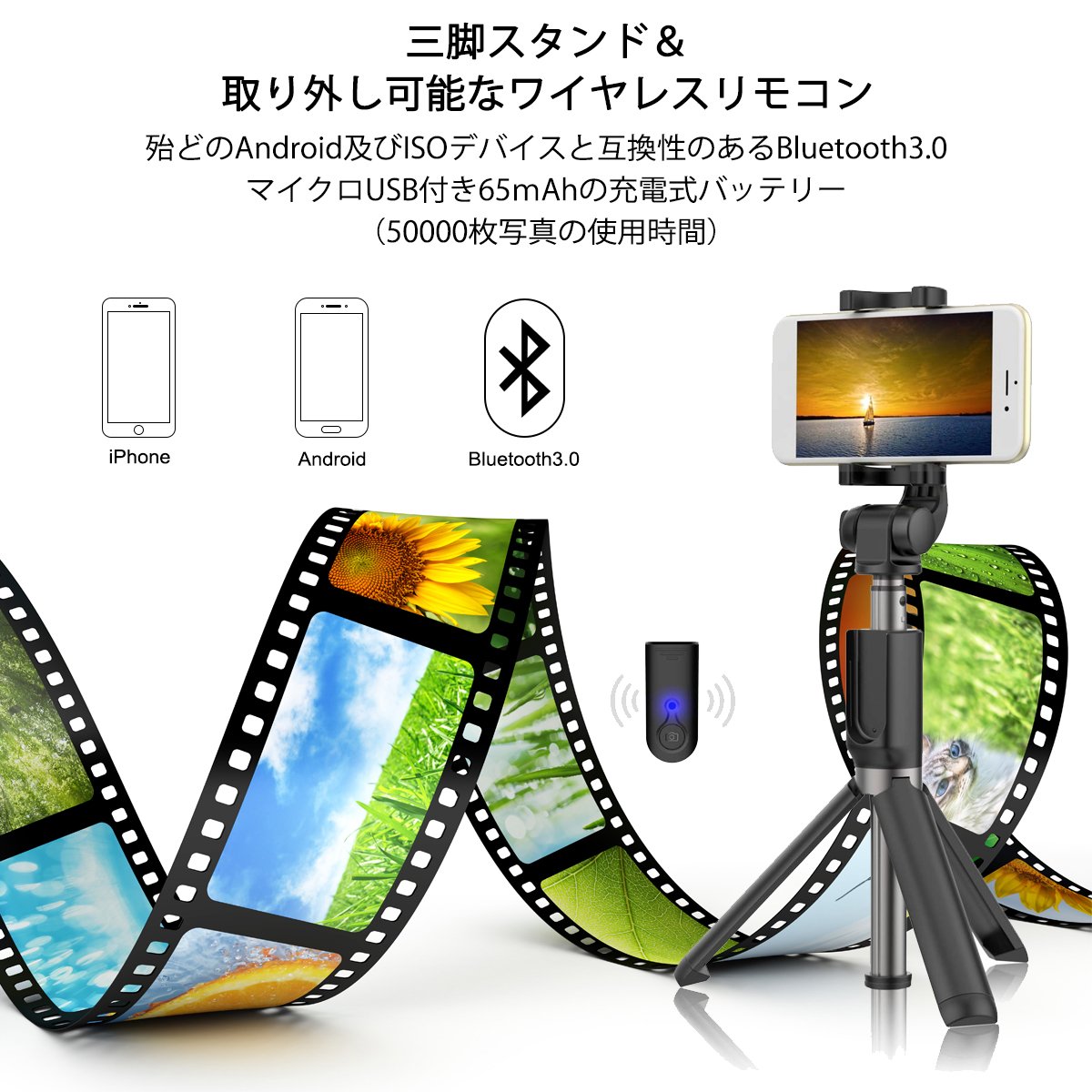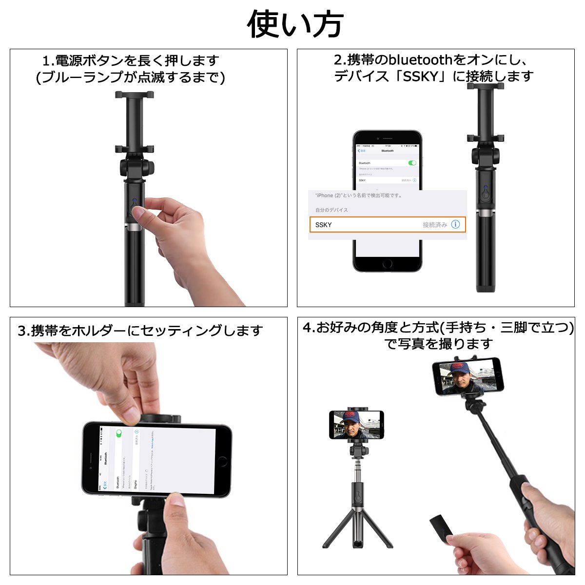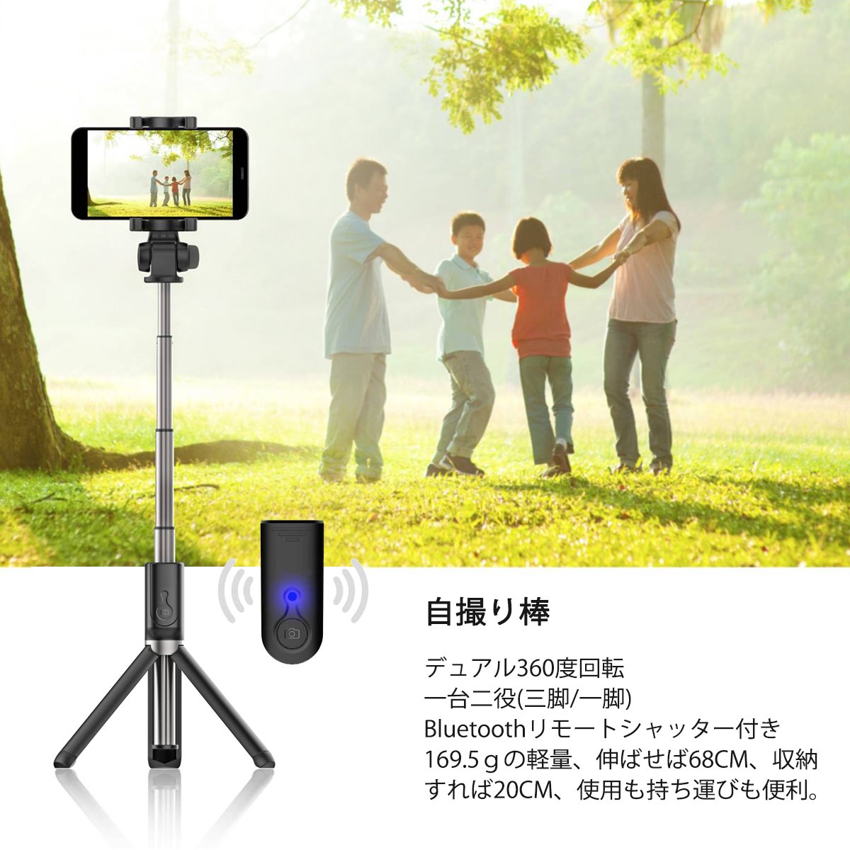 Extend the lever to an appropriate length, press the button once with your thumb, and take a picture.