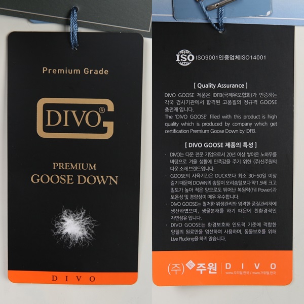 "프리미엄 구스다운 충전재"를 사용하여