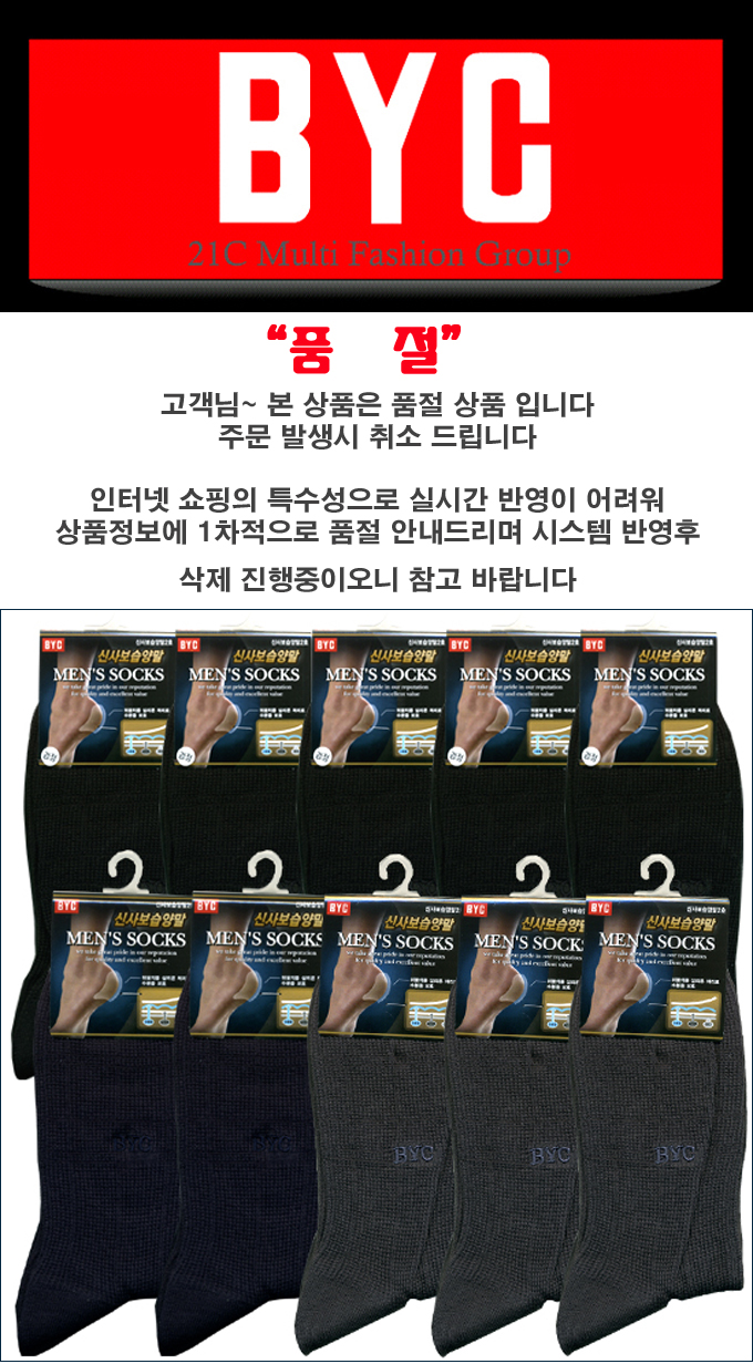 저가의 일반 양말과 비교할수 없는 쾌적함과 우수한 상품으로 BYC만의 상품 입니다