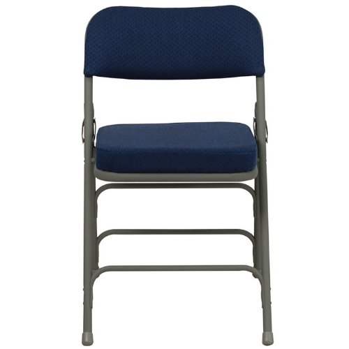 - Title : HERCULES Series Premium Curved Triple Braced & Quad Hinged Fabric Upholstered Metal Folding Chair Navy