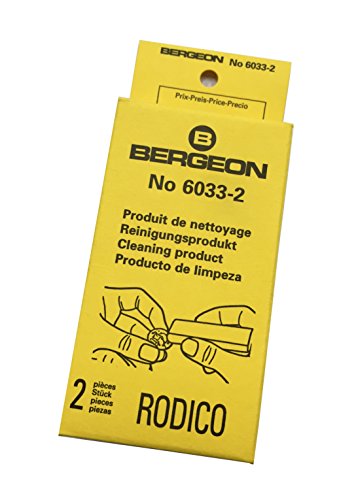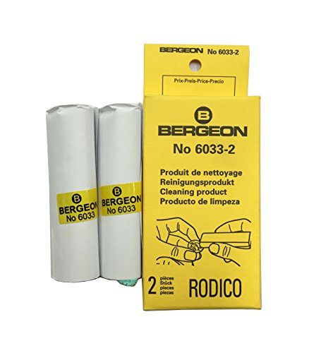 Studio : Bergeon Publisher : Bergeon Binding : Watch Product Description 2 New Bergeon Rodico Oil And Stain Remover Bars This is a new set of 2 Rodico bars They can be used for many aspects of watch repair, cleaning pivots and removing fingerprints and stains Rodico removes excess oil and takes out broken pivots from jewels Each is a 1 1/2 ounce bar 0