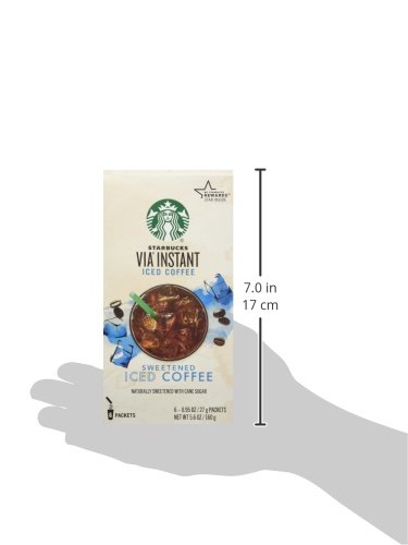 Iced coffee in an instant, when the weather warms up, all it takes is a few seconds to tear open a packet and brew up 16 fl oz of Starbucks VIA Iced Coffee. Lightly sweetened with cane sugar and specially designed for mixing with cold water, this coffee just needs ice to hit the spot.Feature