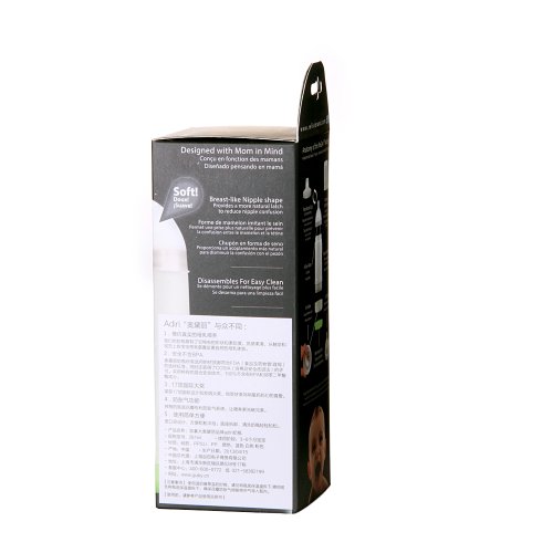 -. Feature : Bottom vented, one-way Petal valve offers consistent air flow reducing possibility of colic / Supports transition from Mother's breast to bottle / Soft Medical grade Silicone Nipple that is ideal in shape and size / Bottle disassembles in 3 convenient pieces for ease of cleaning / BPA free
