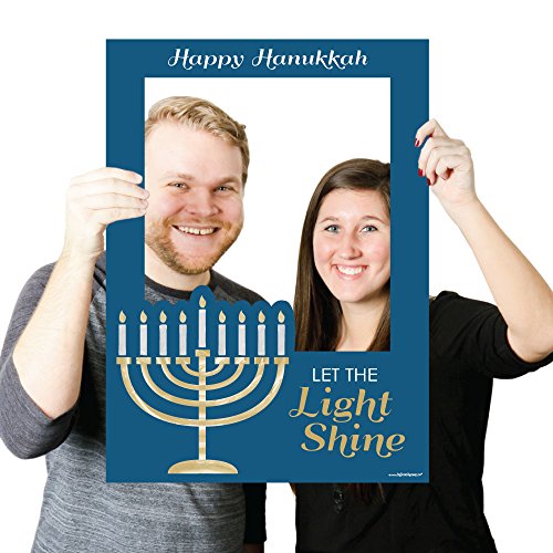 PERFECT FOR ANY CROWD! Photo booth props are fun Happy Hanukkah party supplies for adults and kids - everyone will love posing with cute Chanukah photo booth props. Photo Frame Props Kit MEASURES 17 inches x 23 inches (Picture Frame), 6 inches x 9.5 inches, including the handle (2 Round Props) and 7 inches x 7 inches, including the handle (2 Rectangle Props).