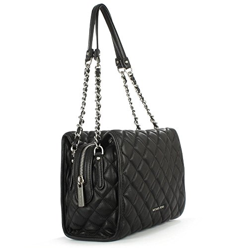 -. Brand : MICHAEL -. Department : womens -. Feature : Featured in black / Medium satchel bag / Adjustable shoulder strap with twisted chain link accents and 11" drop / Detachable crossbody strap / Allover soft, plush quilted detail -. ProductGroup : Shoes -. ProductTypeName : HANDBAG -. Title : MICHAEL Rachel Medium Satchel