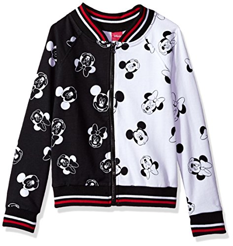Disney Big Girls' Minnie Mouse Bomber Jacket, Black/White, 7/8