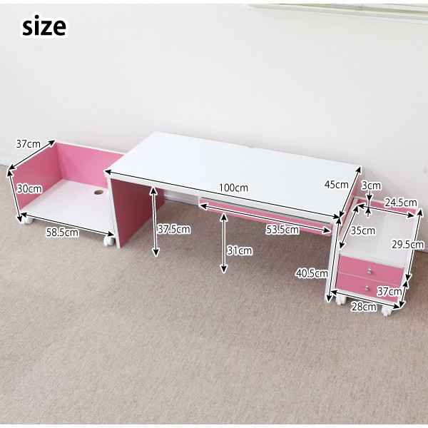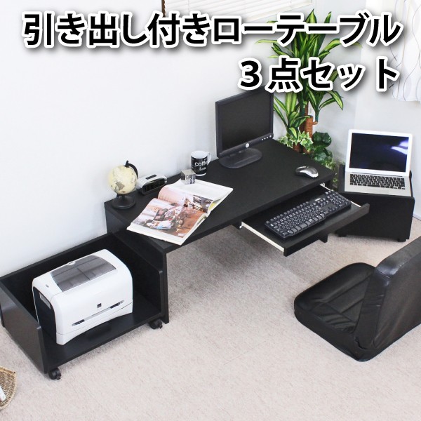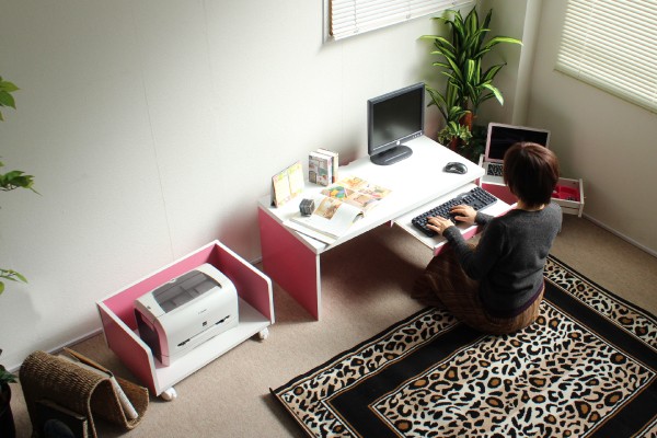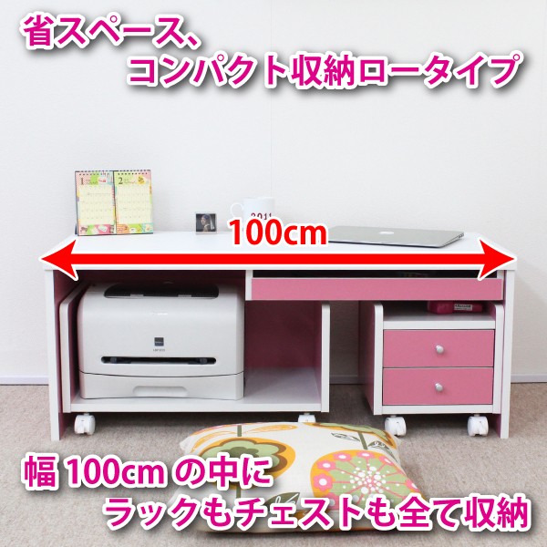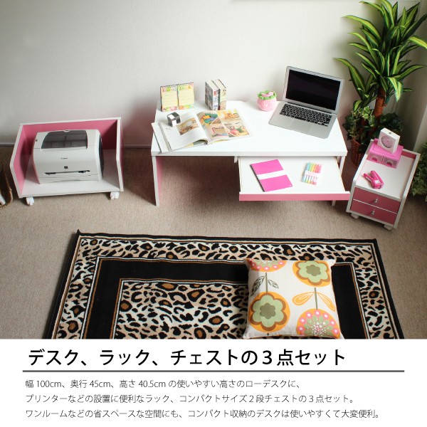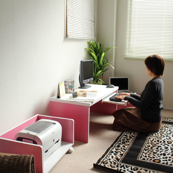 ■使いやすいロータイプデスクでデスクの下にチェスト、ラックが収納可能です。