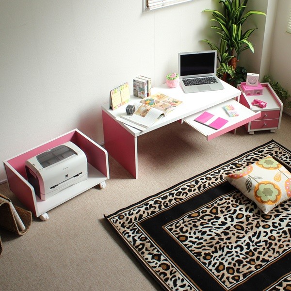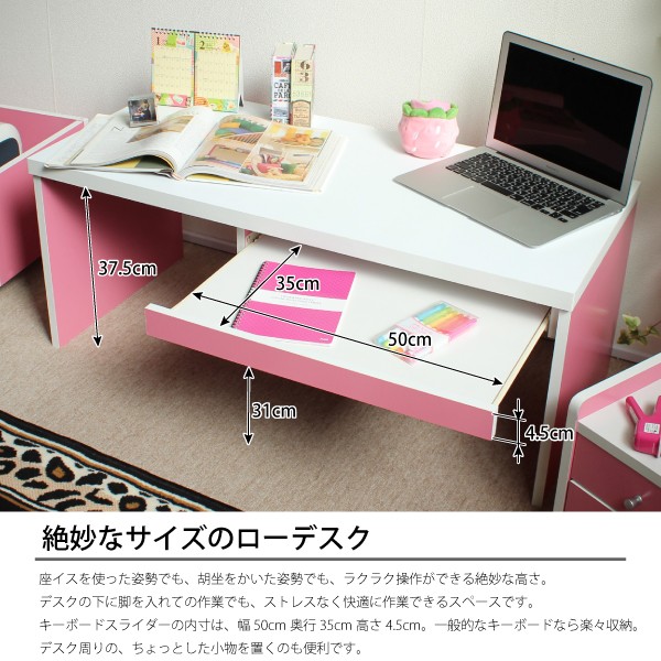 パソコンデスク ローデスク ロータイプ コンパクト 省スペース l字型 おしゃれ 収納 木製 ピンク
